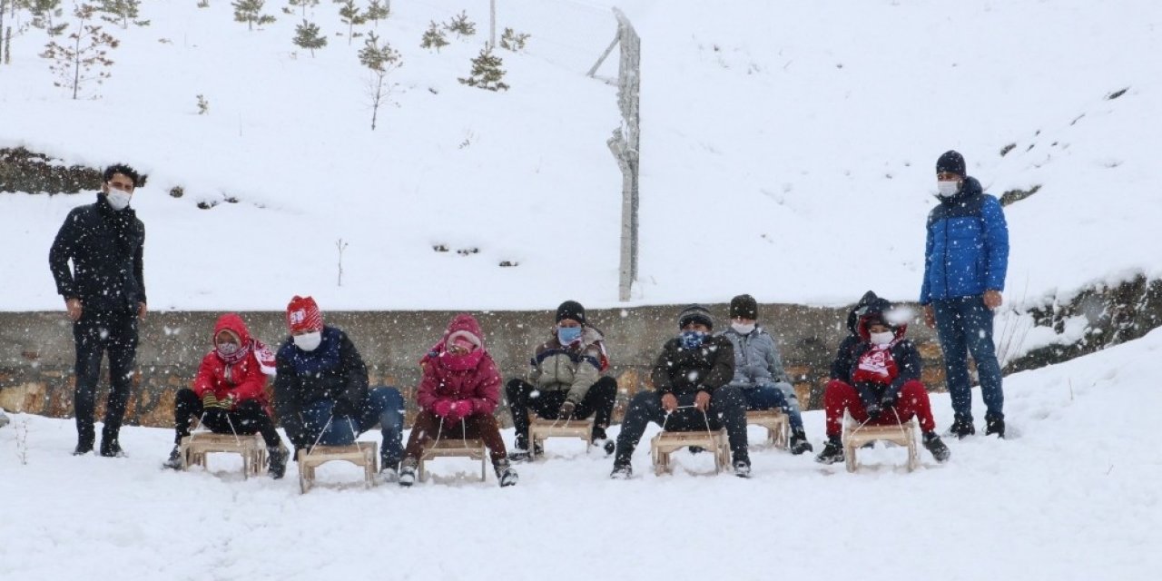 Milli Eğitim Bakanı Ziya Selçuk, okullarda çocukların kayması için yaptırılan ancak şartlar elvermeyince Sevgi Evleri'ne gönderilen kızaklarla kayan çocukların fotoğrafını paylaştı.