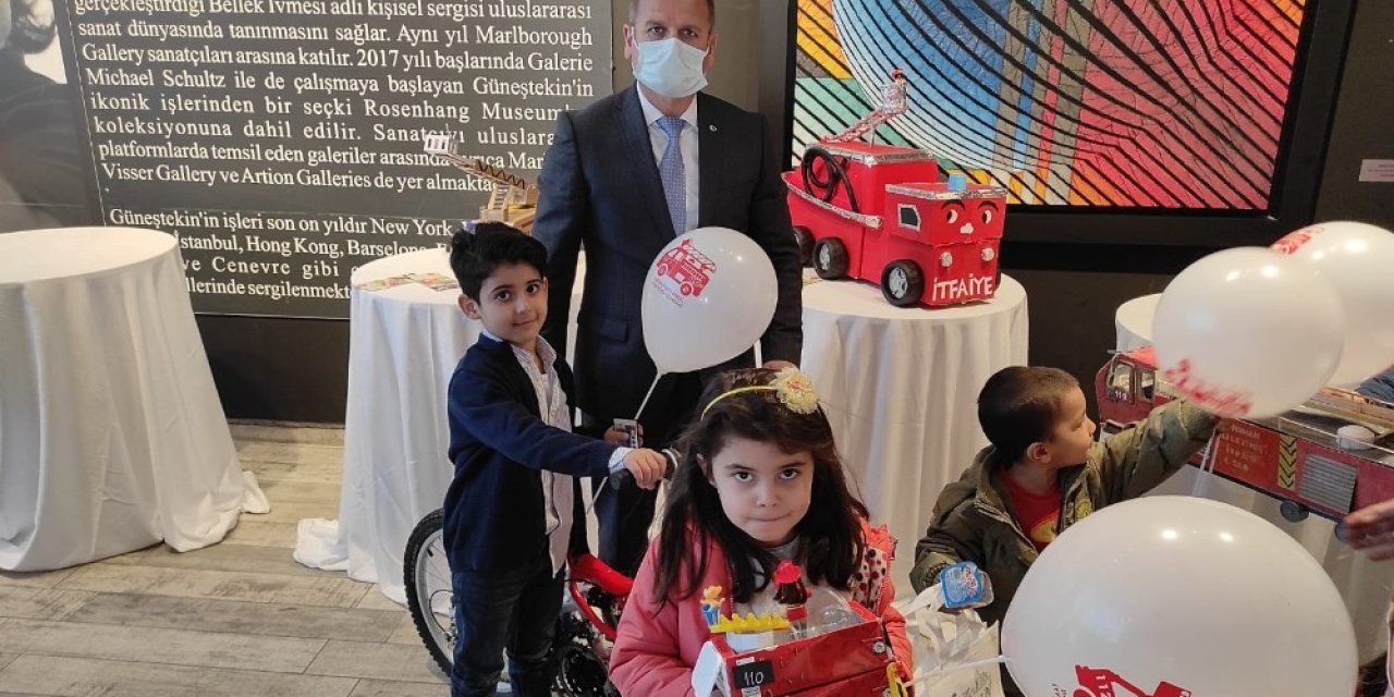 Batman Ahmet Güneştekin Konferans salonunda yapılan sergi ve ödül töreninde atık malzemelerden tasarladıkları birbirinden güzel itfaiye araçlarını sergileyen miniklere, İtfaiye Müdürlüğü tarafından tablet, bisiklet ve benzeri ödüller verildi. Törende konuşan Batman Belediyesi İtfaiye Müdürü İbrahim Gök, "Pandemi döneminde eğitimden uzakta kalan minik yavrularımızın el becerilerini geliştirmek, hayal güçlerini güçlendirmek ve kurdukları hayalleri gerçeğe dönüştürmelerine yardımcı olmak için böyle bir yarışma düzenledik. Bu yarışmada yer alan minik çocuklarımıza yangın ve yangın ihbar hattı ile ilgili bir bilinç oluşturulduğunu görmek bizleri sevindirmiştir. Bu yarışmada sergilenen modelleri gördüğümüzde çocuklarımıza fırsat verildiğinde neler yapabileceğini de görmüş olduk. Yarışmaya katılan bütün minik yavrularımız birinci oldu. Hem öğrencilerimizi hem de ailelerine verdikleri destekten dolayı teşekkür ederim" dedi.