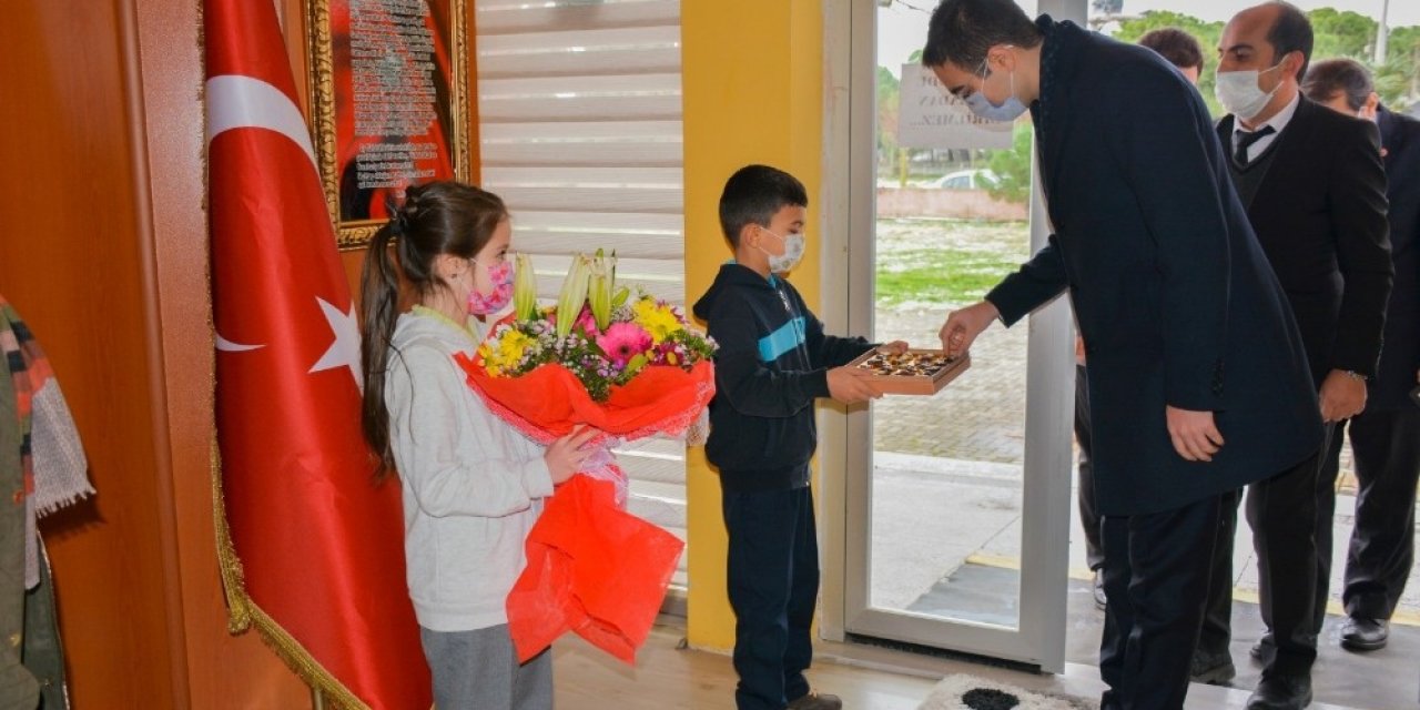 Kaymakam Fatih Yıldız öğrencilerle sohbetinde maske, sosyal mesafe ve hijyen kurallarına uymalarını istedi. Yıldız," Yüz yüze eğitimin sürdürülebilir olması hem öğretmenlerimiz hem de öğrencilerimiz açısından çok önemli, Millî Eğitim Bakanlığımızın koymuş olduğu kurallara uyarak, bunlara harfiyen riayet ederek, çocuklarımıza da burada alışkanlıklar kazandırarak hastalığın bulaşmasının önüne geçilmesi yönünde e çalışmalarımız devam edecek. İnşallah en kısa sürede diğer çocuklarımızı da okullarımıza alarak normal süreçte eğitim, öğretime devam edeceğiz. Tüm öğrenci ve öğretmenlerimize sağlıklı ve başarılı bir eğitim öğretim yılı diliyorum" dedi.