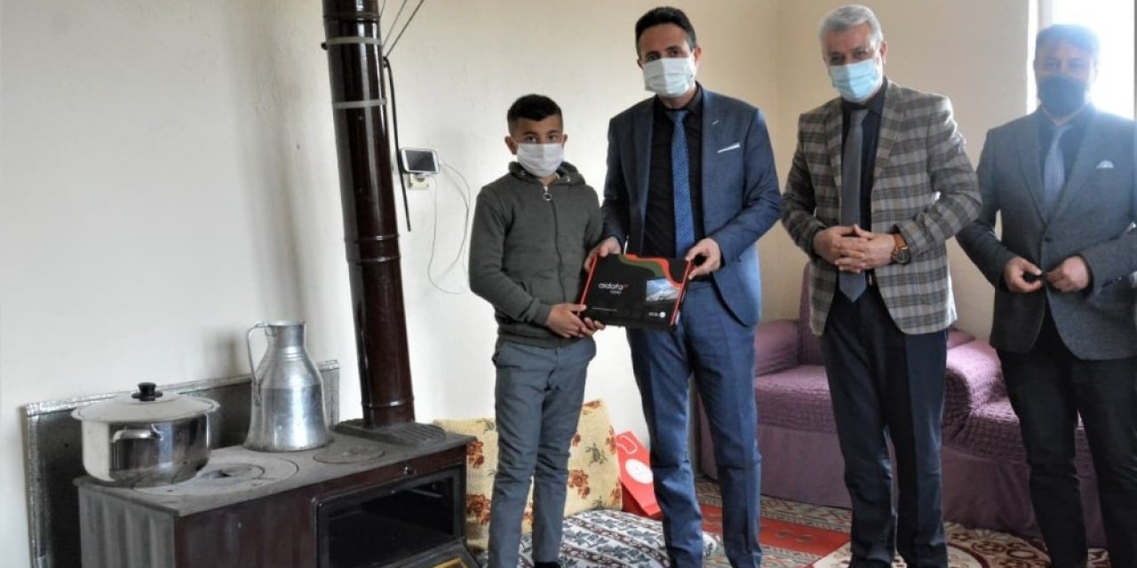 Malatya'nın Yazıhan İlçesi Milli Eğitim Müdürü Battal Kanbay, kırsaldaki öğrencilerin tabletlerini evlerine kadar giderek teslim ediyor.