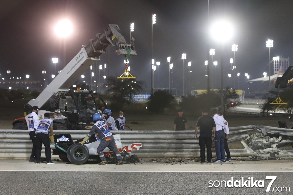 Bahreyn’deki Formula 1 Grand Prix’in açılış turunda Haas pilotu Romain Grosjean kaza yaptı. Kaza sonrası Grosjean’ın aracı alevler içinde kalırken, yarış durulurdu. Grosjean yanan araçtan son anda çıktı. Yarışın ilk turunda Grosjean, Daniil Kvyat ile temas ederek, üçüncü virajda pistten çıktı ve bariyerlere çarptı. Çarpmanın etkisi ile Grosjean’ın aracı ikiye bölünerek, alev aldı. Grosjean, birkaç saniye sonra alevlerin arasından çıkarak, yol kenarındaki acil servise koştu.