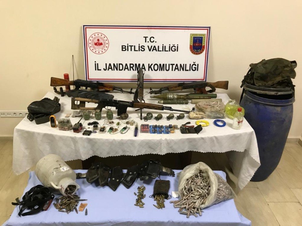 Bitlis merkez ve Mutki ilçesi kırsalında yürütülen operasyonlar neticesinde sığınak, çok sayıda silah ve mühimmat ele geçirildi.