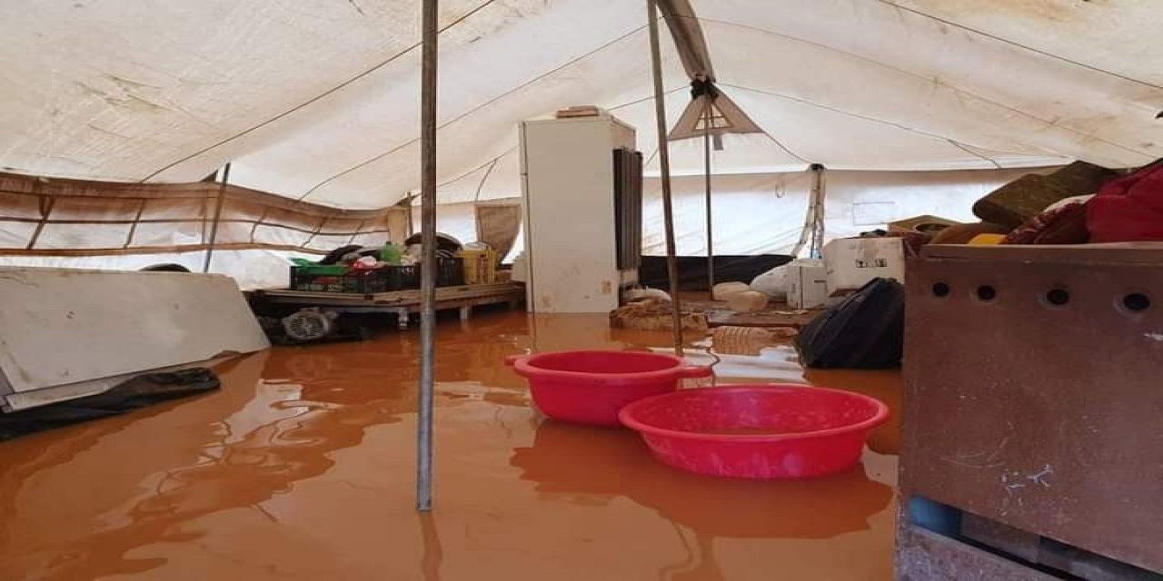 Suriye'de meydana gelem şiddetli yağışlar nedeni ile İdlib kırsalında bulunan kamplar sular altında kaldı.