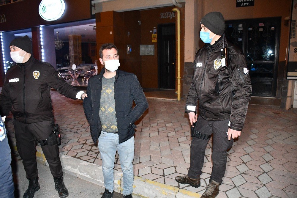 Korona Virüs tedbirleri kapsamında uygulanan sokağa çıkma kısıtlamasında alkol alarak sokakta nağralar atan Yılmaz D. (33) mahalle sakinleri tarafından 112 Acil Çağrı Merkezine bildirildi. İhbar üzerine olay yerine bekçi ve polis ekipleri sevk edildi. Kısa sürede olay yerine gelen bekçi ve polis ekipleri maske takmayan, kısıtlamaya uymayan ve alkollü olarak sokakta nağralar atarak rahatsızlık veren Yılmaz D.'yi yakaladı. Yılmaz D., bekçi ve polis ekiplerine zor anlar yaşatırken, maskesiz olduğu için güçlükle de olsa maskesi taktırıldı. Kendini görüntülemek isteyen basın mensuplarına "Çekme" diye seslenen Yılmaz D., bir süre sonra el sallayarak bekçilere basın mensuplarını şikayet etti. Ardından olay yerinde bulunan otomobiline binerek evine gitmek isteyen Yılmaz D. polis ekiplerince aracın kontağı alınarak engellendi. 1.89 promil alkollü olduğu tespit edilen Yılmaz D.'ye sokağa çıkma kısıtlamasına uymamaktan 3 bin 150 TL para cezası kesildi. Alkollü vatandaş işlemlerinin ardından polis ekiplerince Ereğli Kapı Mahallesinde bulunan evine bırakıldı.