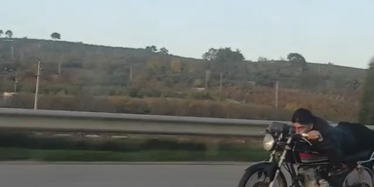 Bursa'da motosiklet sürücüsü, tek teker üzerinde seyir halindeyken, motosikletin üzerine yattı. Sosyal medyada paylaşılan görüntüyü izleyenler,sürücüye tepki gösterdi.Polis ekipleri, motosiklet sürücüsünü bulmak için çalışma başlattı.