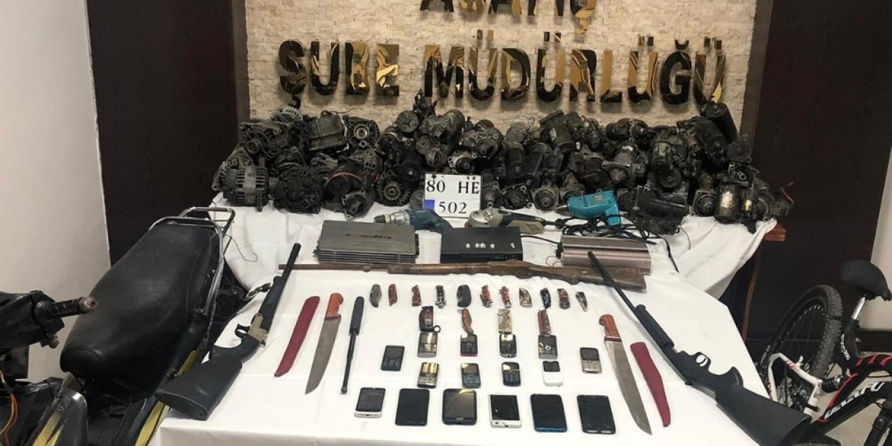 Osmaniye'de çaldığı onlarca araç, cep telefonu ve eşyayı evinde saklayan hırsız düzenlenen operasyonla gözaltına alındı.