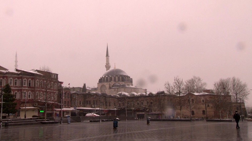 Meteoroloji Genel Müdürlüğü tarafından yapılan uyarının ardından İstanbul'da kar yağışı dün akşam saatleriyle birlikte etkisini göstermeye başladı. Sabah saatlerinde de devam eden kar yağışı nedeniyle mega kent beyaza büründü. Korona virüs ile mücadele kapsamında hafta sonu uygulanan sokağa çıkma kısıtlaması dolayısıyla sessizliğe bürünen Eminönü Meydanı da beyaz örtüyle kaplanan noktalardan biri oldu. Kar yağışı ile birlikte meydanda kartpostallık görüntüler oluştu.